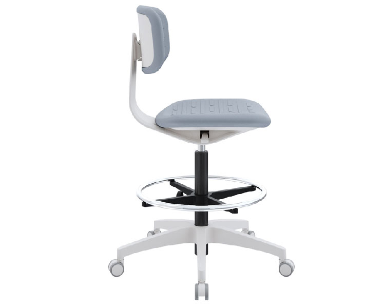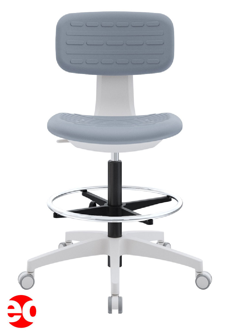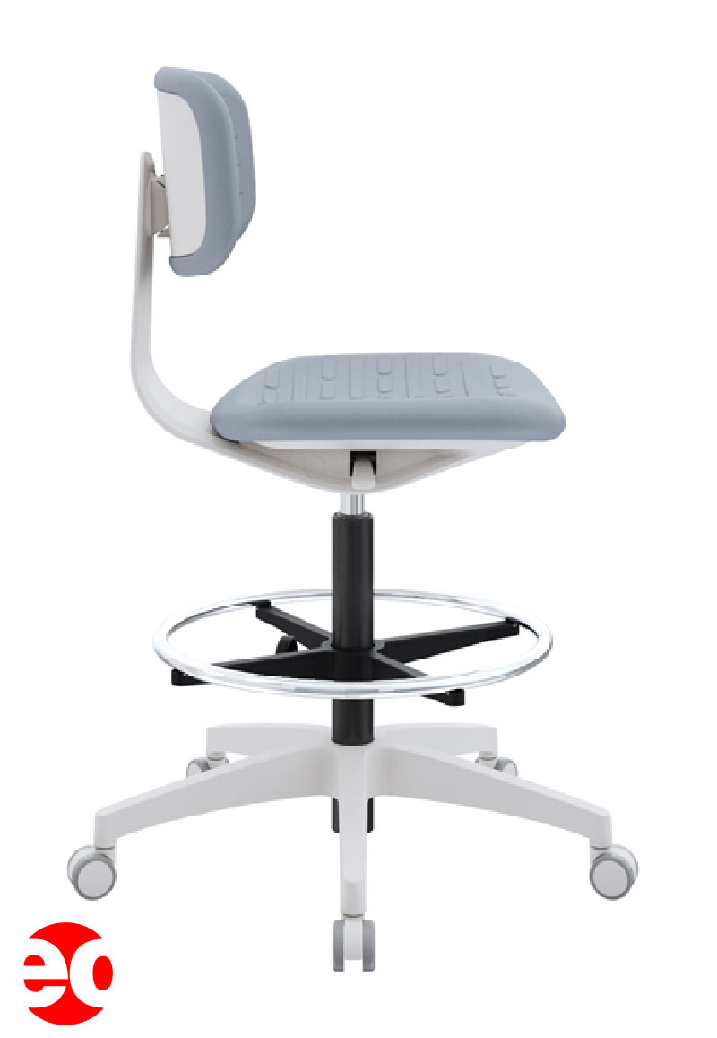 Para mayor ergonomía, integra un aro en polipropileno y cromo con superficie antideslizante, de 46 cm de diámetro, que sirve de apoyo para los pies y favorece una postura adecuada durante el trabajo.
