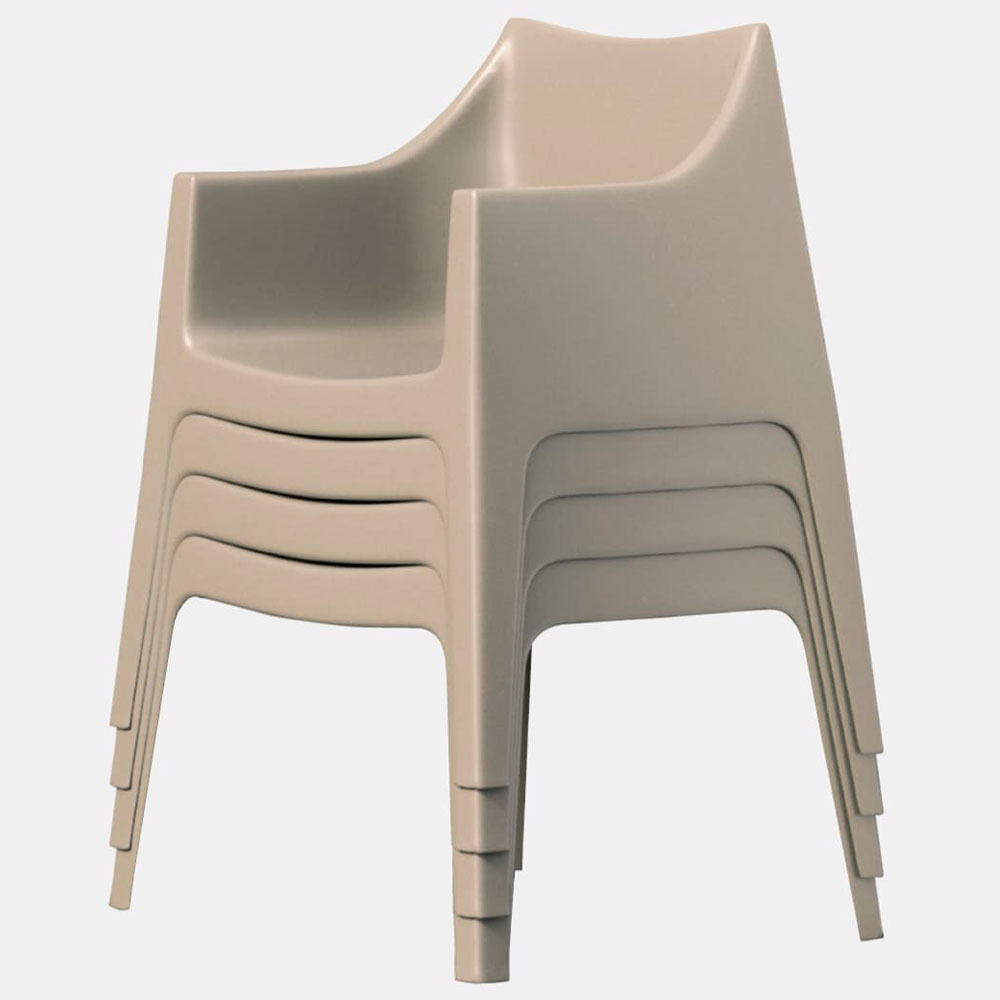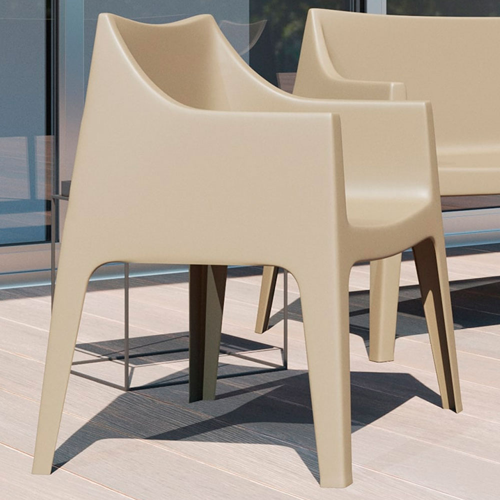 La Poltrona Coccolona es una silla monobloque fabricada en tecnopolímero de alta resistencia, diseñada para ofrecer durabilidad, confort y estilo en cualquier entorno. Gracias a su tratamiento con filtro UV de nivel 9, mantiene su color y apariencia incluso bajo exposición solar prolongada. Su estructura estable y sus patas antideslizantes garantizan seguridad en todo tipo de superficies, mientras que su capacidad de apilado hasta 12 unidades la convierte en una opción práctica para terrazas, jardines, restaurantes o espacios comerciales. Disponible en elegantes tonos arena y grafito, combina funcionalidad y diseño contemporáneo.